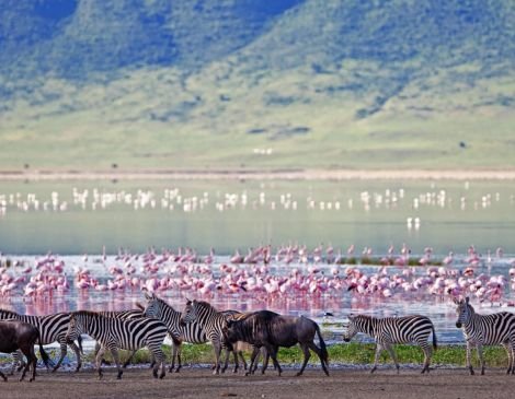 Enjoy a morning game drive in Lake Manyara National Park whose inhabitants include hippos, monkeys, tree climbing lions, flamingos and other varieties of birdlife. You will have lunch at the lodge and then drive to Ngorongoro Conservation Area. You will have dinner and overnight stay at the lodge.