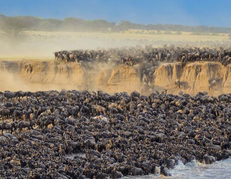 Serengeti Great Migration has been listed as one of the Seven Natural Wonders of the World. Not only does it offer incredible views of the plains dotted with huge herds of wildebeest, zebra, and gazelle, but the rivers are often infested with large Nile crocodiles lying in wait. Some of the best safari opportunities in the world are found here, across a landscape made up of volcanic grasslands and vast plains interrupted by rocky outcrops, rivers, and forests. Visiting the right area in the right season will treat travellers to astonishing sightings of this natural phenomenon.