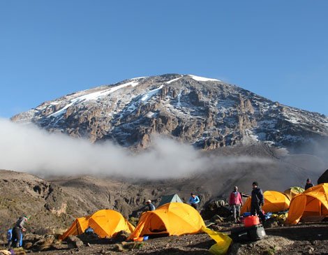 The summit is now a further 1195m up and you will make your final ascent the same night. Prepare your equipment, ski-stick and thermal clothing for your summit bid. This should include the replacement of your headlamp and camera batteries and make sure you have a spare set available as well. To prevent freezing, it will be wise to carry your water in a thermal flask.