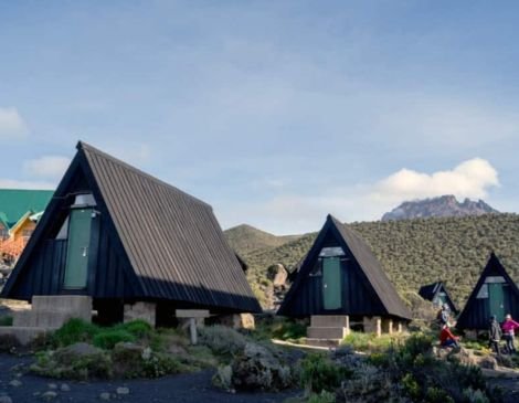 Situated in the barren Alpine desert is Kibo hut, a stone build block house which has bunk beds for 60 climbers, but no streams with water nearby. It is however possible to buy mineral water and soft drinks at the camp office. There are platform toilets behind the hut.