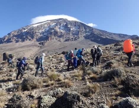 After breakfast, we continue up a steep ridge to the great Barranco Wall, then you climb this imposing obstacle, which turns out to be easier than it looks. Topping out just below the Heim Glacier, you can now appreciate just how beautiful Kilimanjaro really is. With Kibo's glaciers soaring overhead, you descend into the lush Karanga Valley to the Karanga Valley campsite. From the camp, you can look east and see the jagged peaks of Mawenzi jutting into the African sky. After a hot lunch in camp, your afternoon is at leisure for resting or exploring. After two long days, this short day is very important for your acclimatization, since your summit push is about to start.