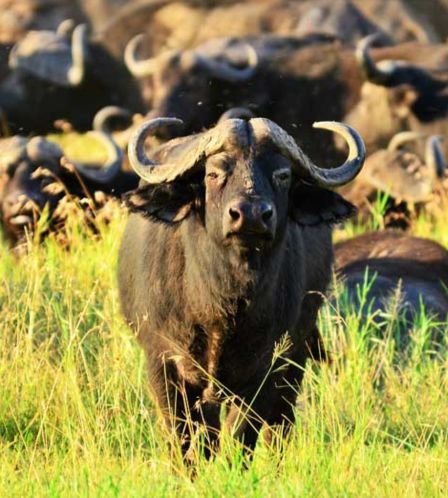 Elephants and Buffaloes: Large herds of elephants and buffaloes are iconic residents of Katavi. Witness the majestic sight of these giants congregating around the dwindling water sources during the dry season.